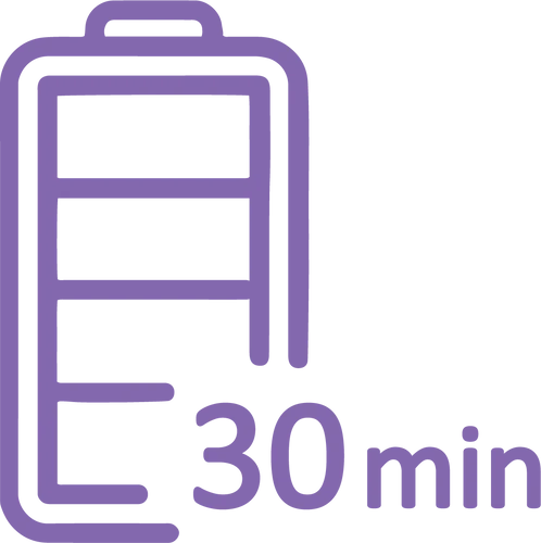 La batteria ha una durata di circa 30 minuti a temperatura massima. Molte delle nostre clienti ci hanno segnalato che con un utilizzo medio la batteria dura una settimana.