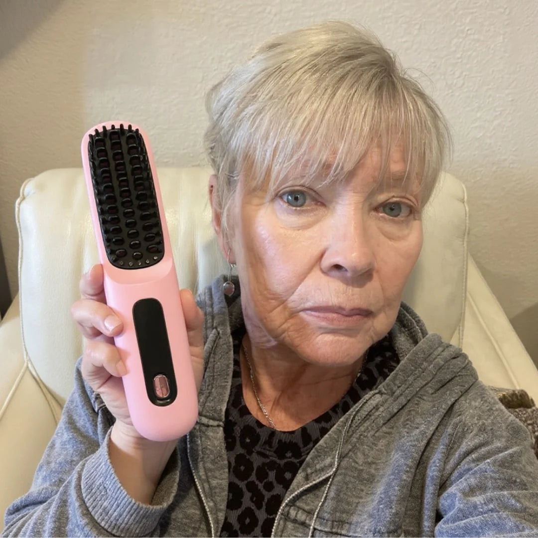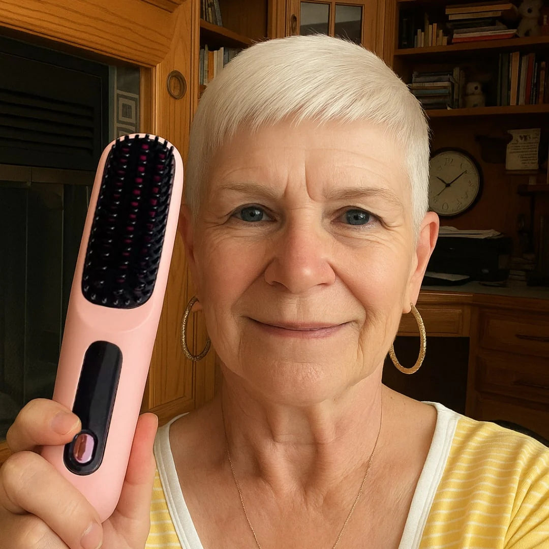 HairGo® è la spazzola riscaldata leggera e senza fili pensata per le donne over 50 che vogliono capelli ordinati in poco tempo - senza fatica.